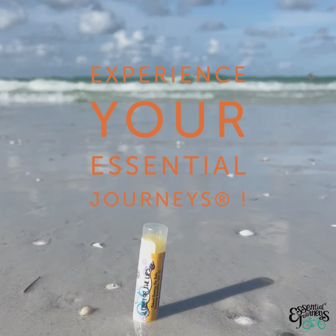 Lube for the Lips™ protects and moisturizes. Designed for cyclists, outdoor enthusiasts and lip lube connoisseurs.  Essential Journeys® Lip Lubes are made with natural bees wax, vitamin E and sunscreen.  Lube for the Lips™ is a great way to protect your lips, nose, ears and face from the sun, wind and extreme conditions.